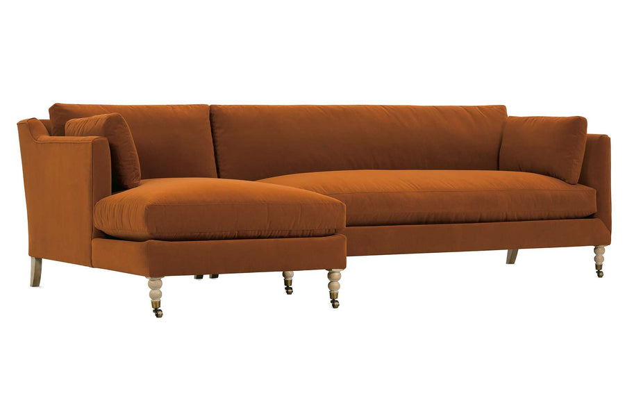 The Madeline Sectional Sofa has a contemporary look featuring nailhead trim and sophisticated turned legs. 1000's of fabrics to choose from!
