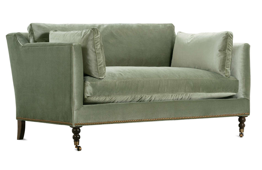 The Madeline Short Sofa is 71" long and features turned legs. Customize the fabric, pillows and more. 1000's of fabrics to choose from.